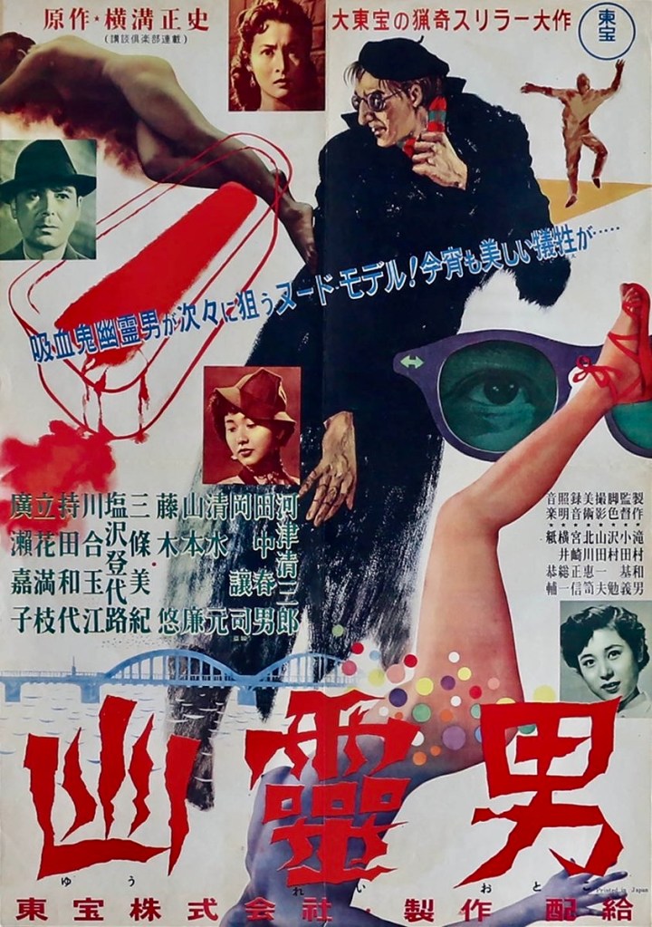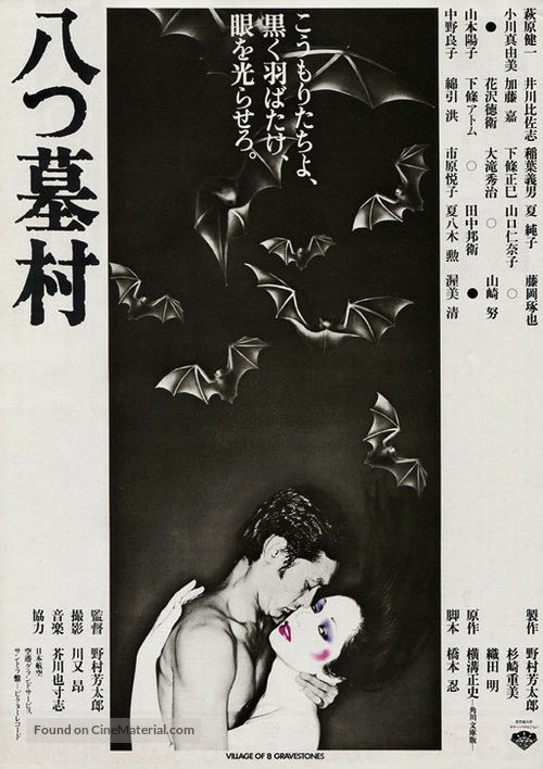 When Village of Eight Gravestones opened in Japan in 1977, it was a big box office hit and it would later be remade as a TV movie in 1991 entitled The Village of the Eight Tomb and as a feature film by director Kon Ichikawa at the end of his career known as The 8-Tomb Village in 1996. Other film adaptations of Seishi Yokomizo’s work include Sanbon Yubi no Otoko (1947), which is based on The Honjin Murder Case, the first novel to feature detective Kindaichi, Yurei Otoko aka Ghost Man (1954), a lurid B-movie thriller about a homicidal maniac who kills models and photographs their corpses; Kyutetsu-Ga aka The Vampire Moth (1956), The Inugami Family (1976), which is probably the most famous and popular of all Yokomizo novel-to-screen adaptations, and The House of Hanging (1979), a tale of a once noble family ruined by their own decadent behavior.