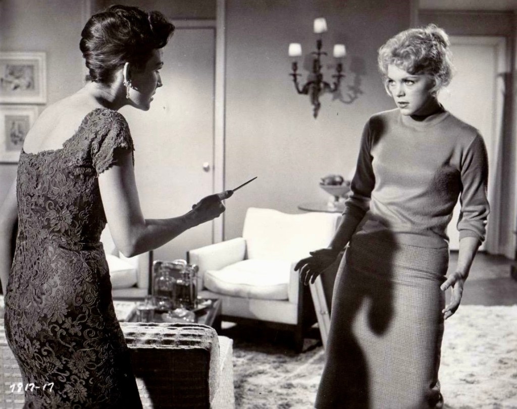 The performances by the female cast members are surprisingly vivid and sharply drawn for this sort of low-budget endeavor but I have to say that Mara Corday’s Vera practically walks off with the movie. A mixture of sexual swagger and predatory cunning, she can also play the cool hipster and even has a tender side. She also has a way with smartass quips. To Agnes, she says, “Thinking takes brains. Just forget you’ve got them,” while an inebriated Marie is dismissed with “Talking to drunks is like talking to mud. It gets you nowhere.” Watching her deal with each new disaster that comes along is great fun and you root for her to triumph in the end, though you know it will all end badly.