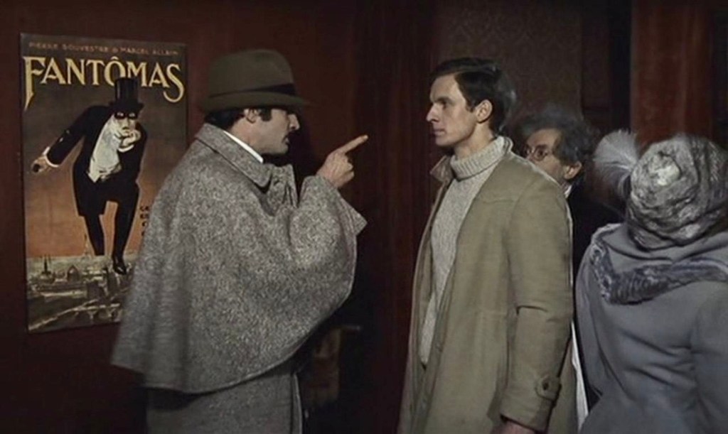 In one of the more telling incidents, Julien is playing the piano at a silent movie house which is showing Louis Feuillade’s serial thriller Fantomas (Director Delveux also worked as a pianist playing live scores for silent films at an early point in his career). Jacques and Odele enter the venue and sit behind him but after the screening, Jacques confronts him: “I think it’s despicable that you hide what you do from me.”