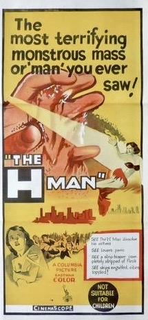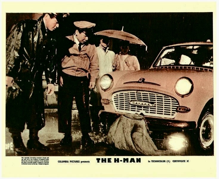 Additional trivia: the premise of The H-Man was inspired by the famous Daigo Fukuryu Maru fishing boat incident of 1954. The trawler and its crew were exposed to and contaminated by nuclear fallout from the United States’ Castle Bravo thermonuclear device test on Bikini Atoll. The boat’s chief radioman died later that year as a result of the radiation and he is generally regarded as the first victim of the Bikini Atoll test.