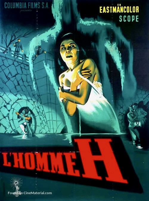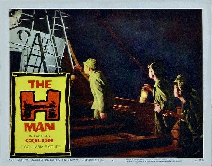 The H-Man was actually a fusion of the sci-fi thriller and the gangster film with a plot that brought together such incongruous types as policemen, sailors, nightclub entertainers, scientists and drug dealers to fight a deadly menace. The movie opens with a robbery in progress and witnesses at the scene see one of the suspects emerge from a sewer grate, only to vanish beside the getaway car, leaving just his clothes behind. The mystery deepens when surviving members of a Japanese freighter report being attacked by liquefied, flesh-eating creatures aboard an abandoned ship they investigated. Scientists working with police on the case determine that the unfortunate trawler was caught in the middle of an atom bomb test and the crewmen were transformed via radiation into H-Men. Then they discover something worse. The “ghost ship” is now docked in Tokyo’s harbor and the deadly inhabitants have escaped into the city’s sewer system. Soon other people began to mysteriously vanish amid reports of a gooey substance that surrounds and liquefies its victims while the police and scientists race against time to contain and destroy the creatures in the sewer. (The climax bears some similarities to the finale of Them! (1954) which took place in the Los Angeles sewer system where the army battled giant, mutant ants).