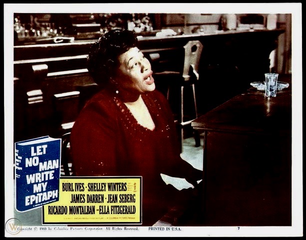 The supporting cast in Let No Man Write My Epitaph is one of the film’s strongest assets and, in particular, it provided a rare dramatic role for jazz vocalist Ella Fitzgerald who had only acted in three other movies – a small part in Ride ‘Em Cowboy [1942] and two more prominent roles in Pete Kelly’s Blues [1955] and St. Louis Blues [1958]. As one of Nellie Romano’s drug-addicted neighbors, Fitzgerald registered strongly and was singled out for praise in several reviews including The New York Times but it would prove to be her last dramatic film role. And yes, she does perform some songs in the movie, including a rendition of “Reach for Tomorrow” with her piano playing dubbed by Cliff Smalls.