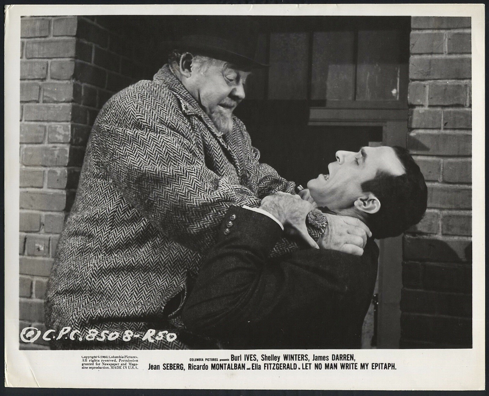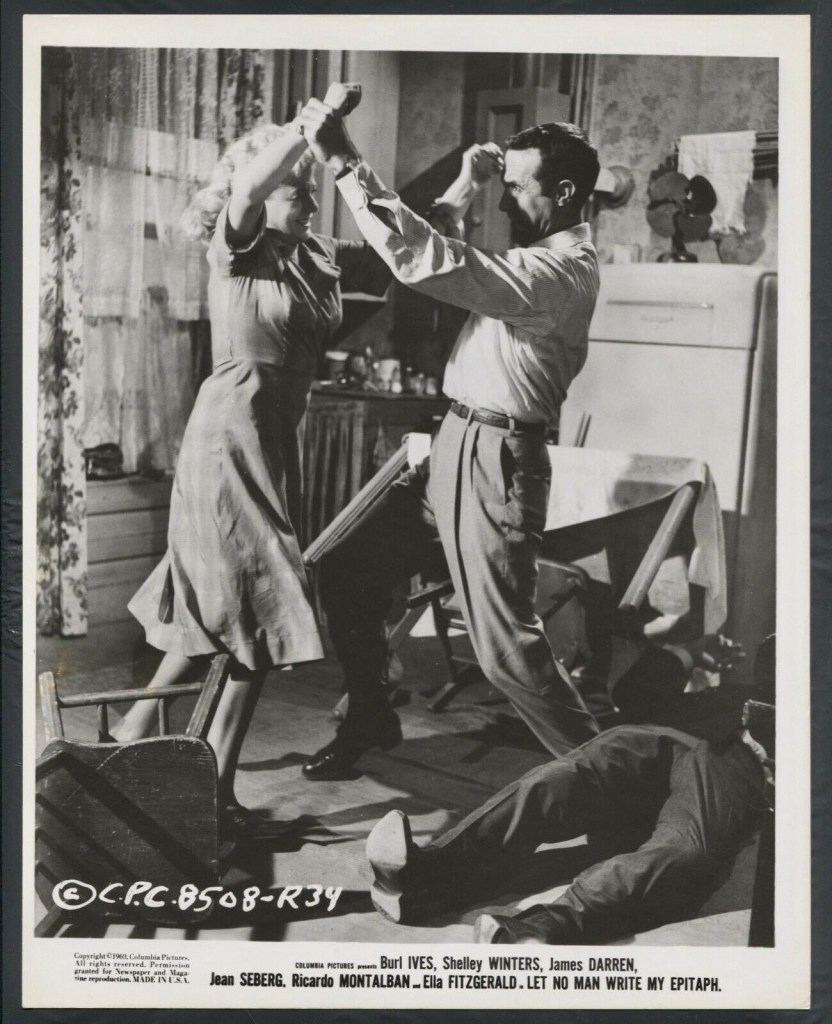 The only other incident that caused Winters some concern on the set of Let No Man Write My Epitaph was during an outdoor scene with Burl Ives where the actress is supposed to emerge from a two-door coupe after an argument with Ives. Winters and Ives had rehearsed the scene for an hour but during the filming of it, the actress accidentally slammed the car door on her hand. Winters was rushed to the hospital and x-rayed. Luckily, she hadn’t broken any bones but she had crushed the ligaments and cartilage in her hand. She ended up having to finish the movie with her left hand hidden in some way such as placing it in a pocket.