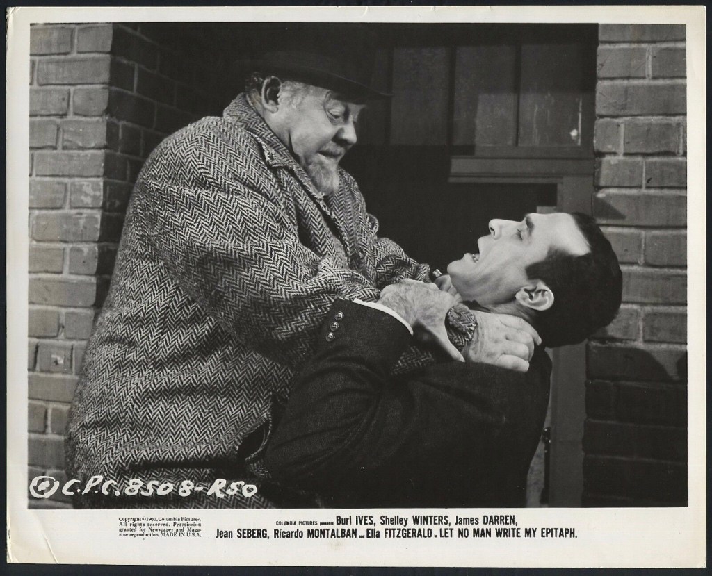 Due to her special contract, Winters was able to convince Leacock to cast James Darren as her son Nick, Burl Ives, Jean Seberg, Ella Fitzgerald and Bernie Hamilton as the legless beggar known as Goodbye George. Winters had first met Hamilton during WWII when he auditioned for a play she was directing and she was so impressed with him, she invited him to look her up in Los Angeles after finishing his stint with the Navy. Hamilton did just that and Winters recalled, “I sent him to the right teachers, and he has had quite an illustrious career in Hollywood. He was the first character actor to break the color line, getting cast in parts that had originally been written for whites.” Winters also campaigned heavily for George C. Scott in the role of Louie Ramponi but that part went instead to Ricardo Montalban. Scott, however, would achieve a major career breakthrough and his first Oscar nomination (for Best Supporting Actor) just six months later for Anatomy of a Murder [1959].