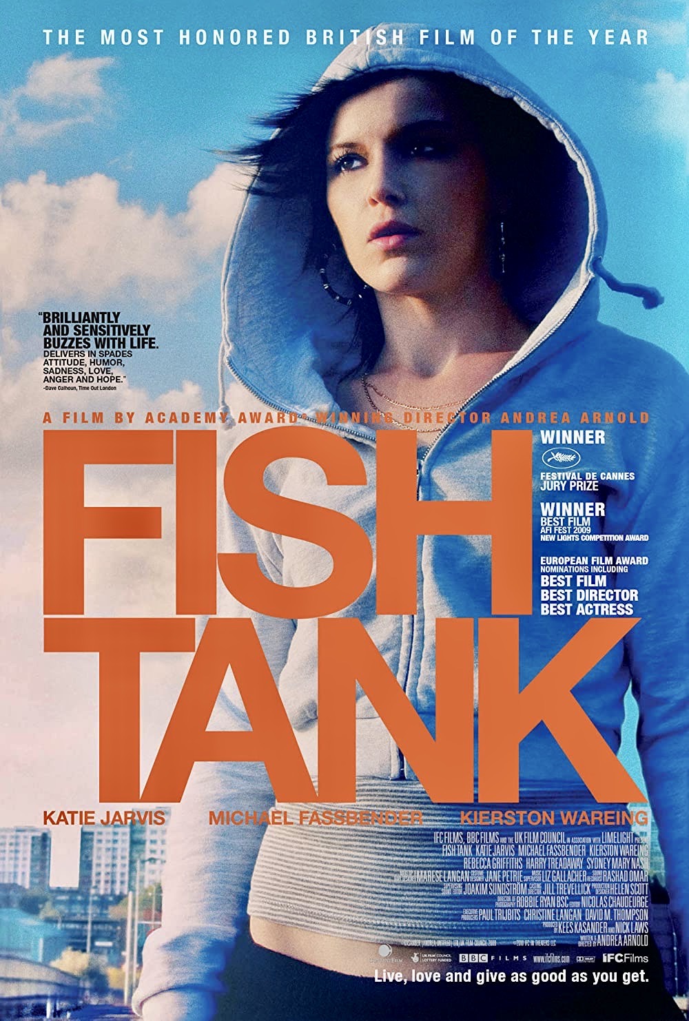 More than a week later on our return trip to Edinburgh, we caught Andrea Arnold’s Fish Tank (2009) which recently premiered at the Telluride Film Festival among others. A raw, searing slice of life about a disaffected teenage girl trapped in a dead end existence in poverty-ridden Essex, England, the movie is like a Ken Loach film on speed with unexpected moments of pure visual poetry like riffs from a jazz saxophonist. Unsentimental to the max, Fish Tank ends up being a moving experience thanks to the extraordinarily “real” performances of the entire cast, particularly first time actor Katie Jarvis in the central role, burning the candle at both ends.