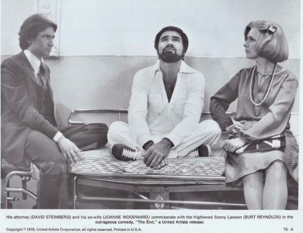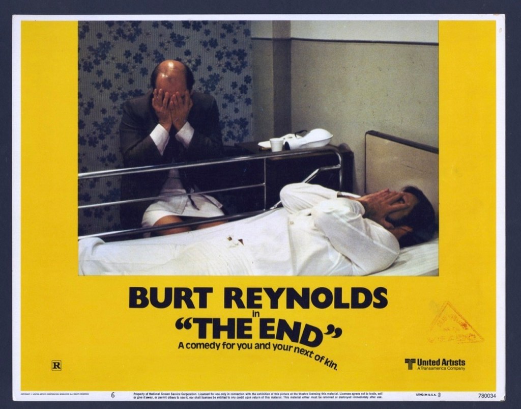 The End did not become a box office hit for Reynolds and the critics were particularly ruthless in their reviews. Variety called it “a tasteless and overripe comedy that disintegrates very early into hysterical, undisciplined hamming.” Vincent Canby’s review in The New York Times was even more specific about the flaws: “The End, which was directed by Burt Reynolds, who also stars in it, is like being with good friends at a party where nothing goes right. The food doesn’t arrive. The ice runs out. A couch catches fire and, outside in the street, the Department of Water Supply is making a noisy, after-hours dig to locate a broken main. Instead of calling the whole thing off, the host tries to cope….This is half-heartedly satiric material that’s been directed by Mr. Reynolds as if it were broad, knock-about comedy sometimes and, at other times, as if it were meant to evoke pathos, which it never does.”