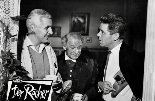 A speeding sedan races down a deserted road at night. Suddenly a package is thrown from the vehicle as it speeds away. The next morning two matronly women on bicycles notice the package on the side of the road and decide to investigate in case there is something of value inside. Eagerly opening the crudely tied box, they look inside and scream at the sight of a severed head. Thus begins the 1960 German mystery thriller, Der Rasher (English title: The Avenger), one of the earliest but almost forgotten entries among the cinematic adaptations of Edgar Wallace crime novels that enjoyed a revival in Germany in the late 1950s.