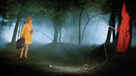 For the record, Alfred Vohrer was the director most often associated with the Rialto Wallace thrillers (he helmed 14 of them) and was the first to move the series out of its atmospheric black and white domain into the garish world of Eastmancolor with the 1966 The Hunchback of Soho (Der Bucklige von Soho). Some of his best entries include Dark Eyes of London (Die Toten Augen von London, 1961), The Inn on the River (Das Gasthaus an der Themse, 1962) and The College Girl Murders (Der Monch mit der Peitsche, 1967), which may have influenced Dario Argento’s stylistic approach to horror.