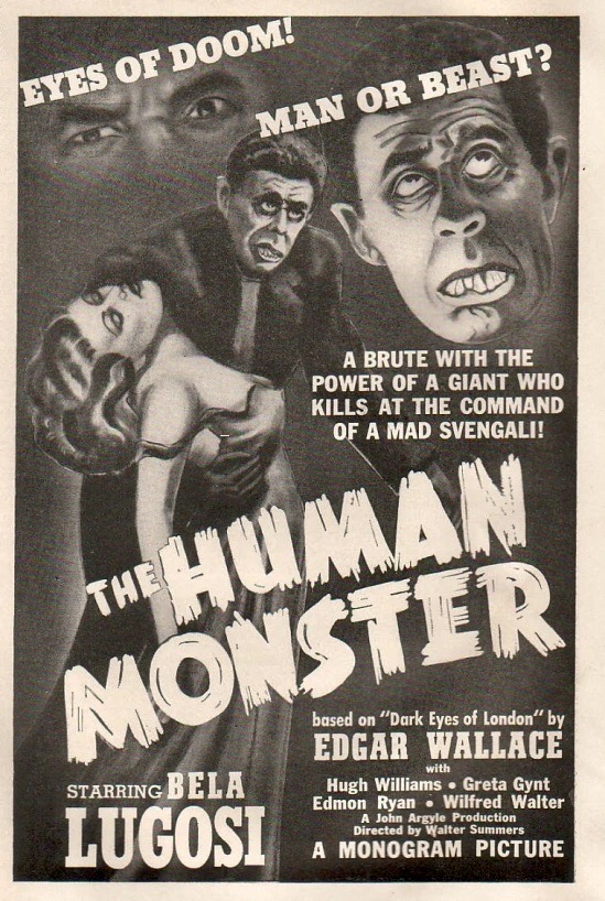Best known as the British author who created the character and story of King Kong in 1932 but died the same year without ever seeing the 1933 screen adaptation, Wallace was a tremendously popular and prolific writer who is said to have penned over 170 novels, numerous plays and countless short stories during a twenty-five year period between 1905 and 1930. Many of his quickly written pulp fiction thrillers and stories were adapted for the screen – Wallace even directed a few himself – during the silent era in England, the U.S. and Germany. After his death, his popularity continued to grow, resulting in more film adaptations of his work during the early sound era. Among the more famous titles are Mystery Liner (1934), The Squeaker (1937), the 15-chapter serial The Green Archer (1939) starring Victor Jory, and The Human Monster (1939), based on his novel The Dark Eyes of London and featuring Bela Lugosi.