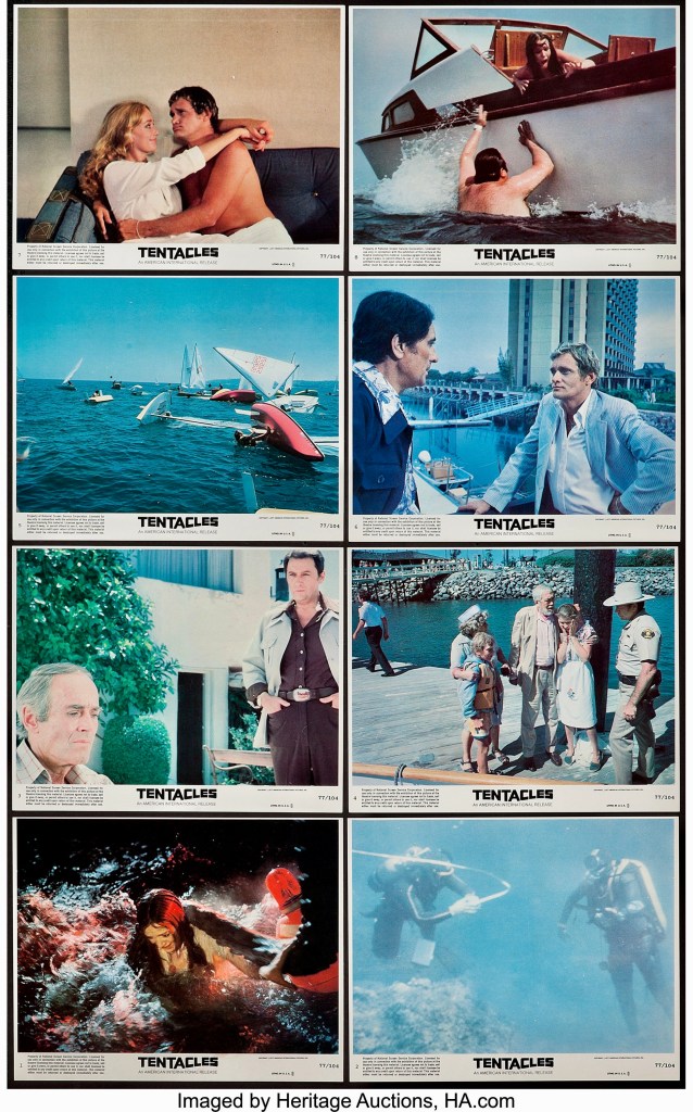 Why did they agree to appear in something that was so far beneath their talents like Tentacles? The easy answer is money but there must have been other reasons. A driving need to work, regardless of the quality? The chance to work with director Ovidio G. Assonitis or receive top billing in an American International Pictures release? The opportunity to work with actors they admired and liked? Maybe that was true of Huston and Winters who would go on to appear together again in another Italian mishmash, The Visitor (1979), a post-Exorcist thriller that also starred Glenn Ford, Lance Henriksen, Mel Ferrer, Sam Peckinpah and Franco Nero as Jesus!