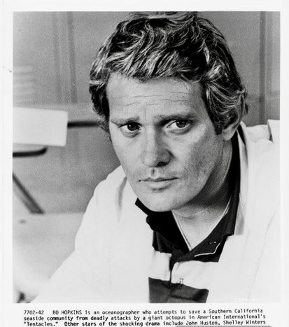 What sets Tentacles’ particular brand of ineptness apart from other run of the mill Jaws ripoffs and makes it hard to stop watching is its almost abstract approach to narrative combined with a you’ve-gotta-be-kidding-me high profile cast that includes John Huston, Shelley Winters, Henry Fonda, Cesare Danova, Claude Akins and Bo Hopkins, who is self-taught in his own peculiar interpretation of Method Acting.
