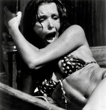And so it goes with Huston either wandering around in his nightgown or looking rumpled in his reporter attire and Shelley accenting her blowsy character with unflattering color striped outfits and an oversized Mexican sombrero in one scene. Huston is actually rather endearing here as the sole voice of reason in a manhunt for a killer octopus and not at all how most people really think of him both on screen and off, which is probably closer to the cunning and malevolent Noah Cross of Roman Polanski’s Chinatown (1974).