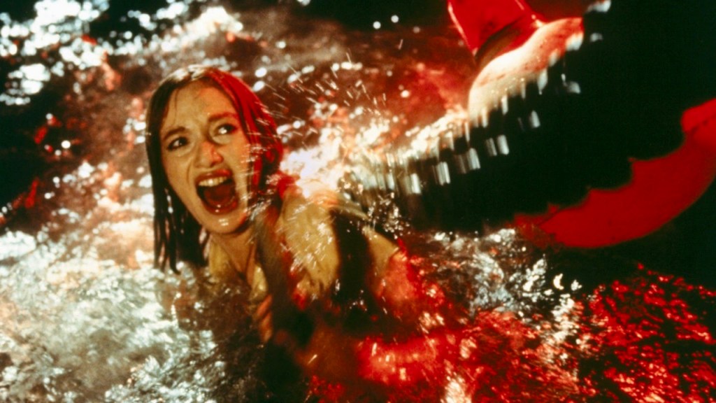 Winters, on the other hand, is already a parody of herself at this point in her career, specializing in grotesque caricatures, something that began in earnest in 1968 with her Mrs. Daphne Flatow creation in Wild in the Streets. Things would steadily go downhill from there with occasional high points (Next Stop Greenwich Village, 1976) and pop culture landmarks (The Poseidon Adventure, 1972) before Winters became completely indiscriminate in her choice of material – Poor Pretty Eddie aka Black Vengeance (1976), Fanny Hill (1983), Witchfire (1986), Purple People Eater (1988), The Silence of the Hams (1994). Tentacles starts to look pretty good compared to some of those.