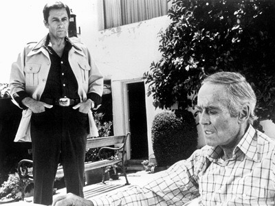 And so it goes with Huston either wandering around in his nightgown or looking rumpled in his reporter attire and Shelley accenting her blowsy character with unflattering color striped outfits and an oversized Mexican sombrero in one scene. Huston is actually rather endearing here as the sole voice of reason in a manhunt for a killer octopus and not at all how most people really think of him both on screen and off, which is probably closer to the cunning and malevolent Noah Cross of Roman Polanski’s Chinatown (1974).