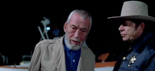 Henry Fonda literally “phones” in his performance in Tentacles, crabbing to someone at the other end of the receiver in two of his three scenes which didn’t involve any on-screen interaction with Huston or Winters and were probably shot in one day. It’s the sort of colorless cameo that could have been played by anybody and a curious choice for Fonda who at this point in his career hadn’t really appeared yet in a low-budget exploitation film on the order of Tentacles. The big budget box office disaster about killer bees, The Swarm, would follow a year later along with such less prestigious projects as City on Fire (1979), Wanda Nevada (1979) and Meteor (1979). Yet, Fonda obviously had a great agent at the time of Tentacles because he receives the distinctive screen credit of “Special Appearance by Henry Fonda as Mr. Whitehead.” Not to be outdone, Claude Akins’ agent also secured him a special screen credit: “With Claude Akins as Robards” (the resort town’s ineffective sheriff).