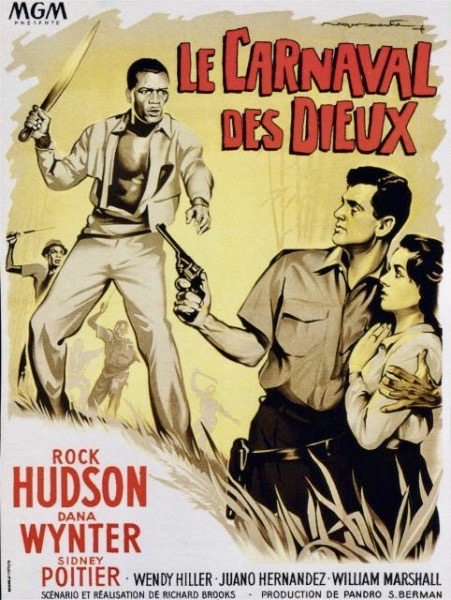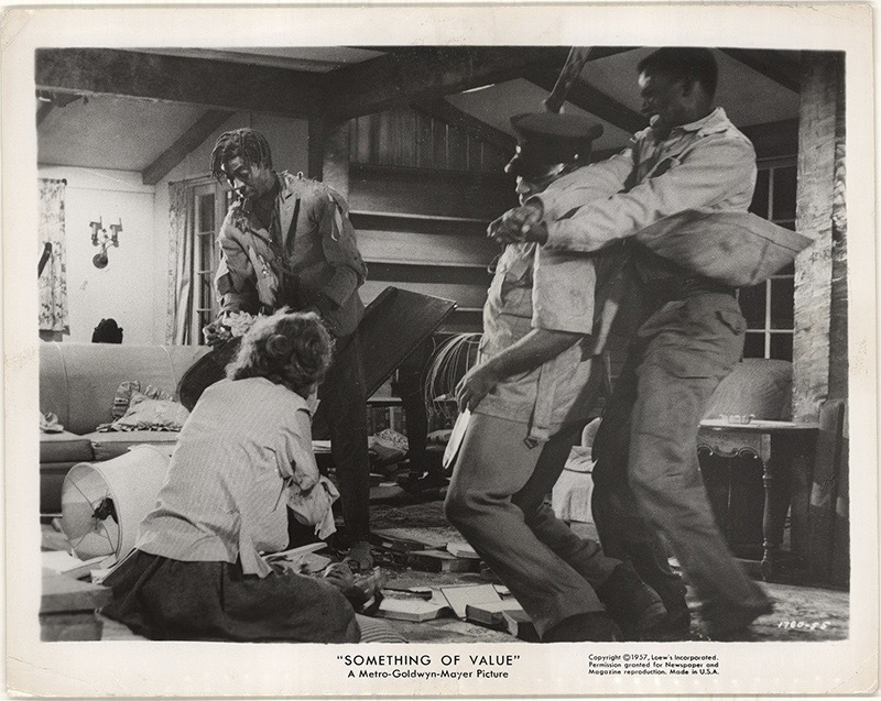Usually the kiddie show was a Walt Disney feature (The Littlest Outlaw) or a comparable children’s film involving animals (Snowfire) or fairy tale/fantasy films (The 7th Voyage of Sinbad) or family-friendly adventures (Tarzan and the Lost Safari) or juvenile comedies (anything starring The Three Stooges or Jerry Lewis). But for some reason in the summer of 1957, we ended up being dropped off for a 10 am screening of Something of Value starring Rock Hudson and Sidney Poitier. Maybe it wasn’t really a kiddie matinee and some parent screwed up and dumped us off anyway. Maybe the theatre manager hadn’t seen it and thought it was a jungle adventure. At any rate, a bunch of kids under the age of eight – I was six at the time – thought they were going to see an African safari film as in – you know – Tarzan. Wrong! Instead, we got a movie based on Robert Ruark’s bestseller about the Mau Mau uprisings in Kenya that began in 1952 (and didn’t end until 1960).