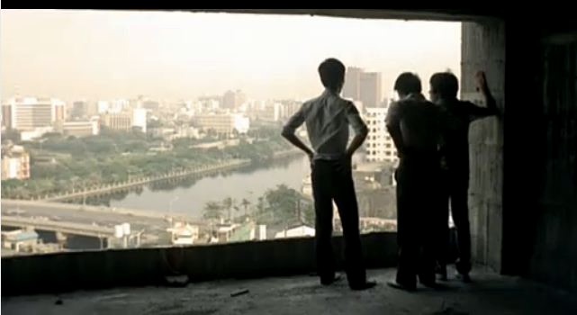 This scene will later contrast ironically with an experience in the city after a shady street vendor sells the boys tickets to a private porno movie. The theater venue turns out to be a deserted room in an unfinished high rise building and the boys realize their naivete has marked them as suckers. The so-called screen is actually a windowless opening that looks out over the city through a cinemascope-like frame, leaving the boys to imagine their lives in the bustling world below.