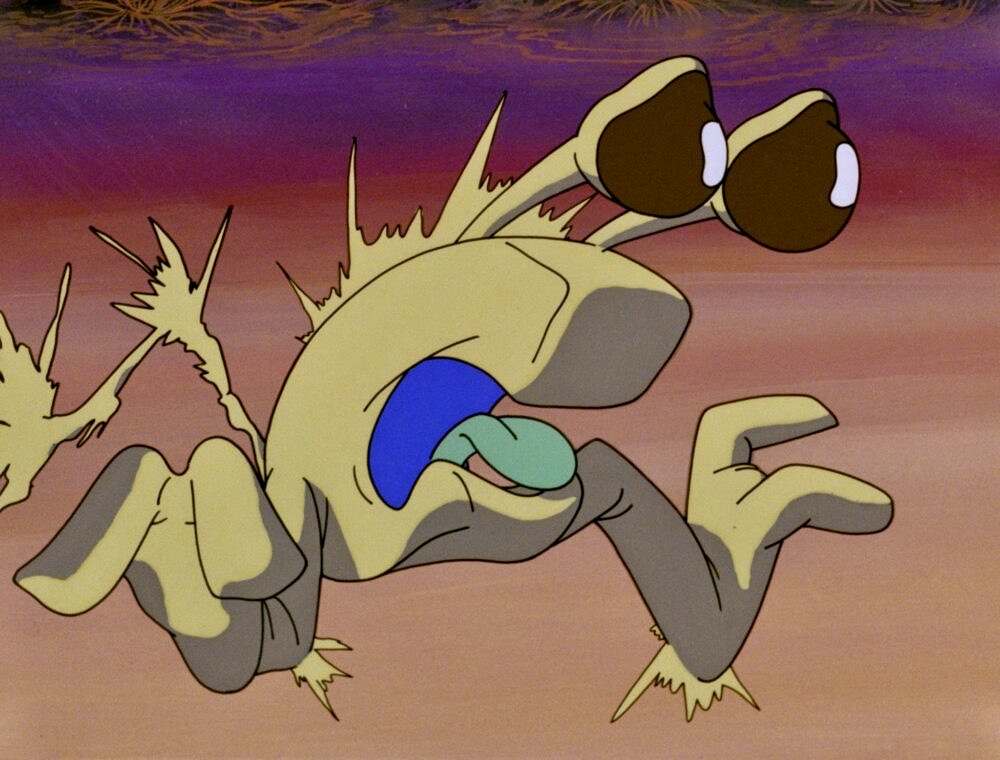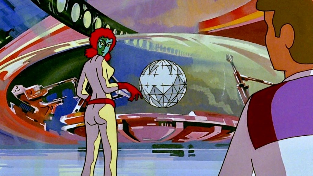 One of the most impressive sequences follows the sudden appearance of a towering red rock formation that morphs into a destructive behemoth and then transforms into a rampaging tidal wave that races through city streets. The animation is almost as bizarre as the futuristic designs in Fantastic Planet (1973), a surreal sci-fi fantasy from French filmmaker Rene Laloux, but it can also mirror the futuristic suburban landscapes of The Jetsons (1962-63), the TV series from Hanna-Barbera, or the psychedelic, pop art look of Yellow Submarine (1968).