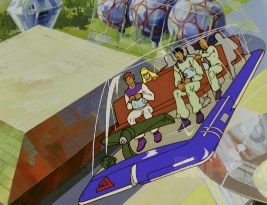 A narrator sets up the basic premise. In the year 3084, a crew of experts in their field are assembled to man the Delta mission, which will explore the galaxy for life on other planets. Delta is powered by a super brain which has the ability to grow plants and crops but also can create robots for work needs or defense purposes. The Delta crew is an international mix that includes Dan, the station designer and head researcher, Oana, an electronic device designer, Yashiro, the on-board electronics coordinator and Anuta, a bio-cybernetician with an afro. They are soon joined by Alma, an intergalactic reporter from the planet Opp, who intends to report on their journey via live news feeds. Also along for the ride is Tin, Alma’s metal-chewing dog which looks and leaps about like a hyperactive frog.