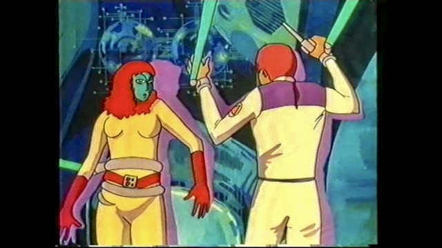 The only disappointing aspect of Delta Space Mission is the fact that the Delta crew led by Dan is never fully developed. They remain little more than enigmatic stick figures while Alma and Tin are the main protagonists of the film as well as the true heroes. Alma, in her skin tight space uniform that accents her breasts, is quite a sight and her flame red hair and green skin are well matched by an ensemble including red boots and a red belt. Tin is an even more eclectic character but turns out to be the secret weapon in the group. Also, the super brain is a memorable villain and a cautionary warning against artificial intelligence. Who could guess that the inability to comprehend love would create a malfunction in its operation? There is something both comic and touching in the being’s obsession, crying “Mine. Mine. Forever. In Love. Brightness. Alma!”