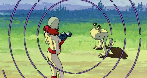 In recent years streaming options for entertainment – movies, TV shows, music – have increased and become more commonplace in the average U.S. household but, at the same time, physical media like Blu-rays and DVD continues to prosper among movie lovers and film collectors. Specialty distributors like Severin Films, Vinegar Syndrome and Kino Lorber are releasing new acquisitions at an astonishing rate and obscure genre films and forgotten art house fare are suddenly available on Blu-ray in presentations that look better now than they did during their original theatrical release such as The Five Days (1973, Severin), cult director Dario Argento’s rare non-horror period piece, Ulli Lommell’s witchcraft thriller The Devonsville Terror (1983, Vinegar Syndrome) and Francois Truffaut’s Mississippi Mermaid (1969, Kino Lorber). Deaf Crocodile, a distributor based in Los Angeles, stands apart from its competitors for restoring and releasing movies from around the world that many film buffs never even knew existed. Among their recent releases are Zerograd (1988), an absurdist Soviet satire, The Unknown Man of Shandigor (1967) by Swiss filmmaker Jean-Louis Roy and Solomon King, a lost Blaxploitation indie from 1974. The real surprise for me, however, is Misiunea Spatiala Delta (English title: Delta Space Mission), an animated science fiction fantasy from Romania that was released in 1984.