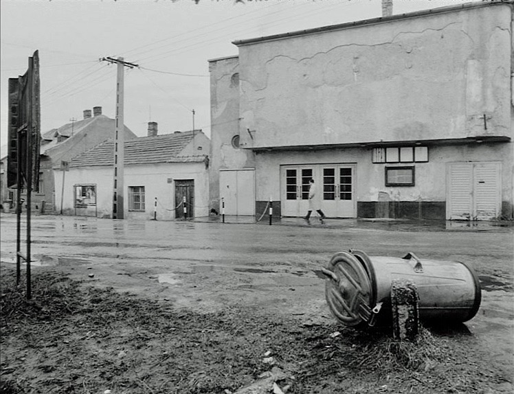 On a visual level, some critics have compared the look of Tarr’s films to those of Russian director Andrei Tarkovsky but I think Damnation, in particular, shares some similarities with Yugoslavian director Dusan Makavejev’s Covek Nije Tica (English title: Man is Not a Bird), a quirky romantic drama which was also set in an economically depressed mining town. Makavejev injects more sly humor and subversive imagery into his tale of a failed romance than Tarr does in Damnation but the latter is not entirely humorless. Consider the final scene of the film in which Karrer reverts to his animal nature and gets down on all fours and has a growling face-off with a feral dog in a garbage dump. It is both astonishing and absurd at the same time.