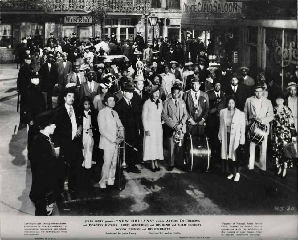 Typical of Hollywood’s treatment of many black entertainers during this era, this “new, improved” version of New Orleans was obviously based solely on box-office considerations; the studio was afraid southern theater owners wouldn’t book the film with black actors in the leads during the Jim Crow era, but it was also true that the largest majority of moviegoers in America at that time were white and not that interested in black culture or jazz musicians.