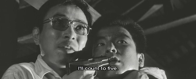 Jiro and Mizuhara subject Sabu to torture, thinking he will reveal the hiding place of the stolen suitcases, but he won’t budge so the duo try more extreme measures on Sabu’s friends including the use of a finger-crushing vise. Meanwhile, Ichiro races against time to find the gang’s hideout and retrieve the stolen property before the Iwasaki members find them first. Of course, it all spirals out of control with bleak consequences for everyone in classic noir fashion.
