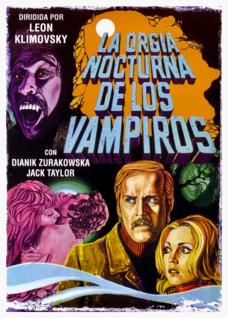 Klimovsky’s main claim to fame, however, are his horror film collaborations with cult film actor/screenwriter/director Paul Naschy aka Jacinto Molina Alvarez, which began with La Noche de Walpurgis (U.S. title: The Werewolf Versus the Vampire Woman) in 1971. Other horror film highlights are Dr. Jekyll vs. the Werewolf (1972), Vengeance of the Zombies (1973) and The Vampires Night Orgy (1973) with American actor Jack Taylor in the leading role. All of them are highly entertaining, better-than-average pulp offerings for the horror aficionado.