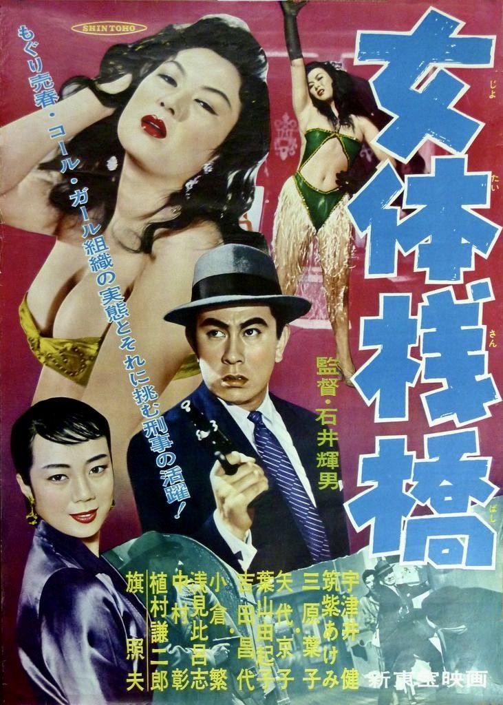 In January 1950 U.S. Senator Estes Kefauver launched an investigation into organized crime across America that exposed rampant corruption, racketeering and illegal practices being committed within public institutions across the country. Since these hearings were broadcast on television and the radio, the American public soon learned about various crime syndicates that were operating in specific cities and states. Movie studios in Hollywood also took note and began turning out numerous crime expose movies filmed in a semi-documentary fashion and often featuring an opening narration that used a real law official to warn against the situation being depicted. Among the more representative of these crime expose thrillers were Kansas City Confidential (1952), The Captive City (1952), Down Three Dark Streets (1954), The Phenix City Story (1955) and The Brothers Rico (1957). Without a doubt, this new trend in crime movies influenced filmmakers around the globe with countries as diverse as Germany, the U.K. and Japan creating their own variations on the formula. Nyotai Sanbashi (1958), which roughly translates as Pier of a Woman’s Body or Flesh Pier, is a particularly tantalizing down-and-dirty B-movie from Japanese director Teruo Ishii that mimics the expose approach of The Phenix City Story in its tale of mob-controlled businesses, sex trafficking and other criminal activities in Tokyo.