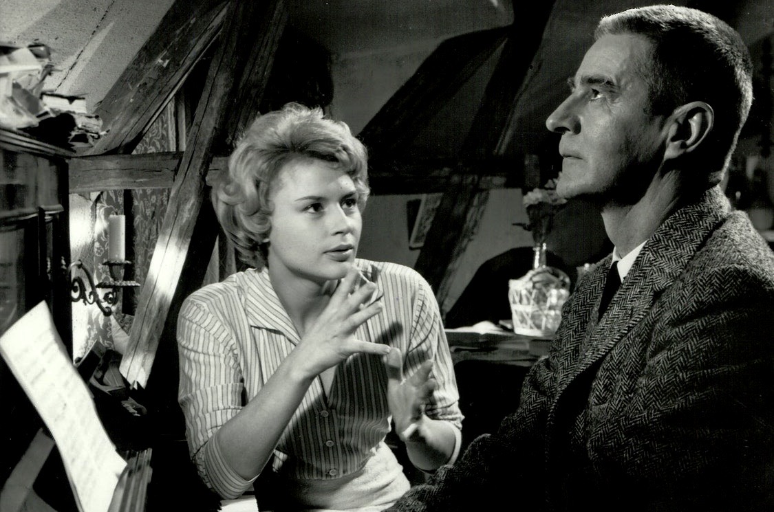 It is also amusing to see her paired romantically with Bjornstrand, who was her frequent co-star in numerous Bergman films. In fact, the movie Andersson made right after Crime in Paradise was Bergman’s Through a Glass Darkly (1961), in which she played the mentally ill daughter of a famous psychiatrist (played by Bjornstrand), who treats her like a guinea pig for his research.