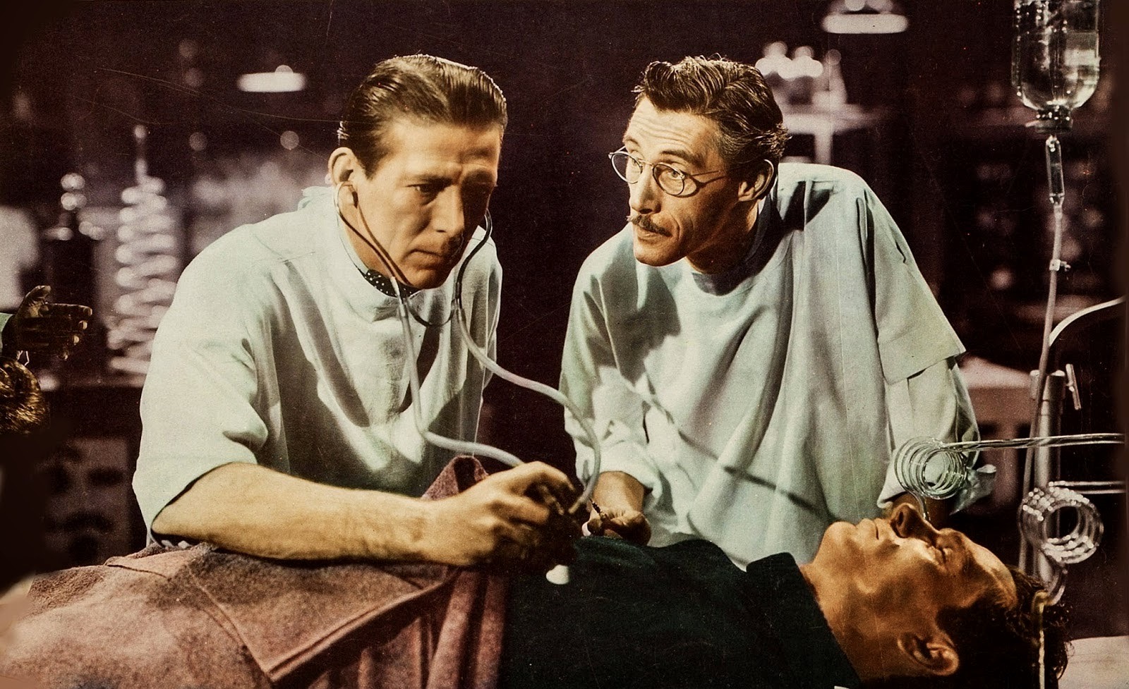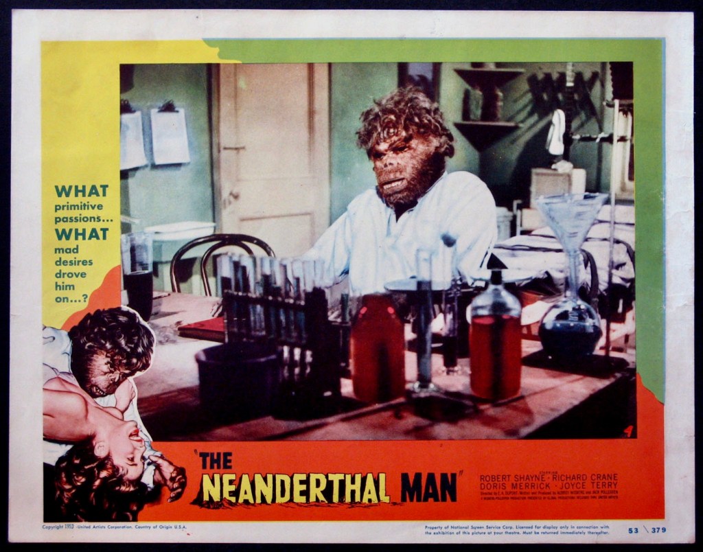 As for co-star Robert Shayne, he was near of the end of his contract with Warner Brothers which he signed in 1942 (the 1946 noir drama Nobody Lives Forever with John Garfield was Shayne’s last picture for WB). He went free lance after that but ended up working in low-budget films for Monogram, PRC, United Artists, AIP and television for almost the rest of his career. Like Carradine, Shayne wound up with several horror films on his resume like The Neanderthal Man (1953), Indestructible Man (1956), The Giant Claw (1957) and How to Make a Monster (1958).