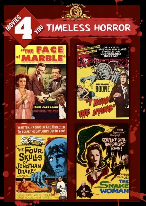 The Face of Marble has been released in various formats over the years but probably the best presentation of the movie is featured on the now out-of-print DVD from Shout Factory entitled Timeless Horror. The disc also contains I Bury the Living (1958), The Four Skulls of Jonathan Drake (1959) and The Snake Woman (1961).