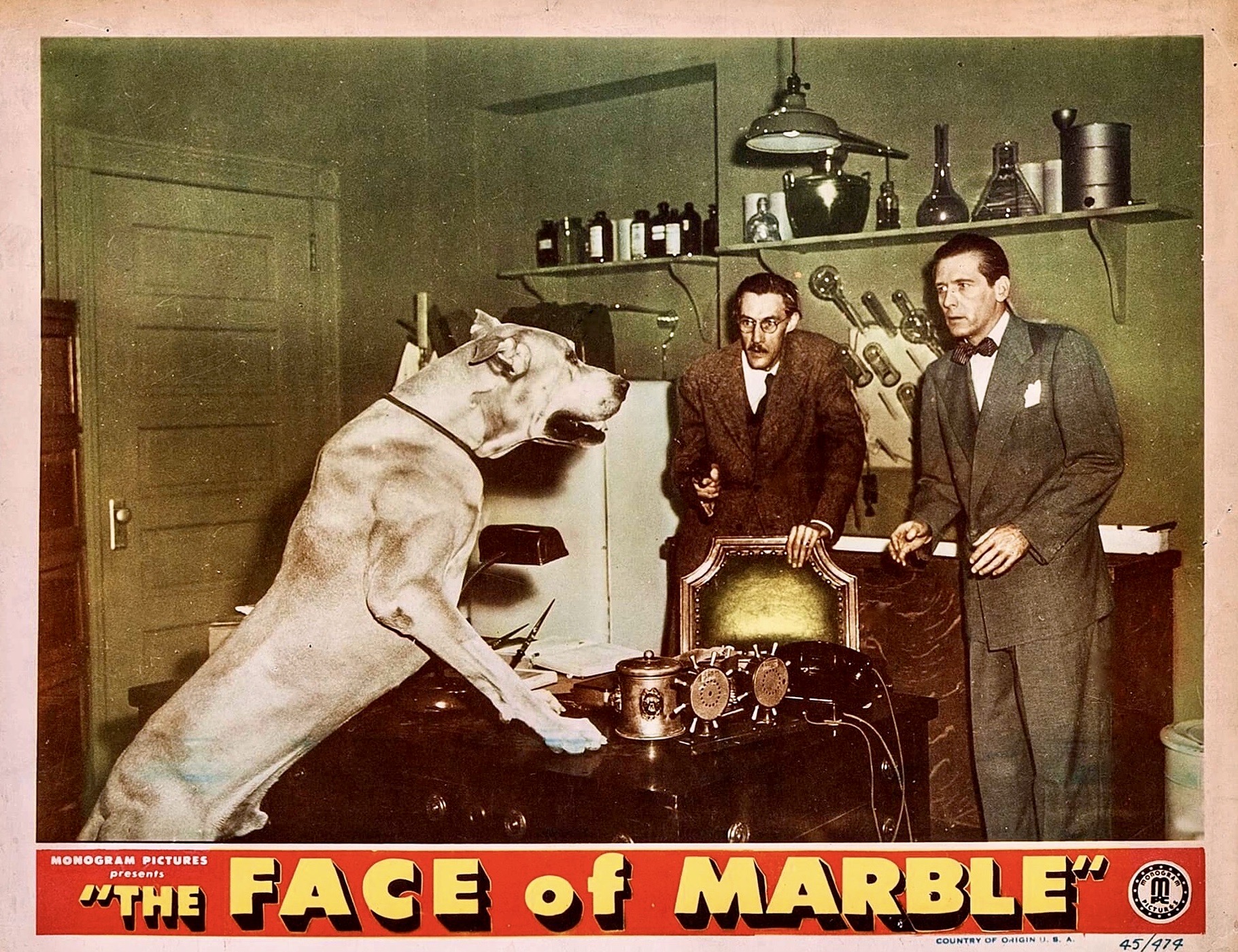 It’s not likely that a Poverty Row horror film like The Face of Marble (1946) will ever end up on anyone’s top ten list – unless the category is guilty pleasures – but that’s what distinguishes a movie like this from a title on the AFI approved list of great American classics. A cult movie rarely conforms to conventional standards of what’s good and what’s bad and that’s why The Face of Marble could be a more entertaining and challenging viewing experience than say, Ingmar Bergman’s Winter Light (1963). For one thing, you need a scorecard to keep track of the anything-goes-plot which ties together failed scientific experiments, reanimated corpses, a blood-drinking ghost dog that can walk through walls, a voodoo-practicing housekeeper and one woman’s hopeless, unrequited romantic obsession with her husband’s young assistant.