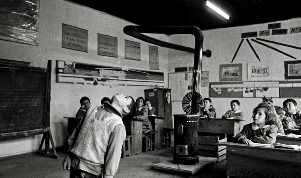 It opens in the wintertime as children play on the frozen streets and delight in watching Mad Ahmet, a local character, slip on the ice repeatedly. Later at school, the young students are instructed to read from an essay on socialization which sounds like state sanctioned propaganda: “Solidarity means loyalty to one another regarding individual feelings, interests and thoughts. The feeling of being together encourages living together. People can not live alone and meet their needs.”