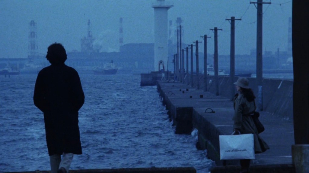 Mostly set in a nocturnal world – even the daylight scenes feature gray, overcast skies – Yokohoma BJ Blues is a noir-drenched mood piece where the seedy atmosphere, decadent underworld characters and Yusaku Matsuda’s low-key but charismatic performance as an enigmatic protagonist dressed in a long black overcoat are much more compelling than the convoluted plot. Even the look and style of the film deviates from the traditional detective thriller format to create a sense of disorientation and ambiguity – characters are sometimes obscured or partially seen in oddly framed shots or low lighting nighttime scenes, the pacing is erratic and moves in fits and starts and unexpected moments of humor occasionally emerge under drastic circumstances. All of this makes Kudo’s film a fascinating experiment that casts a strange, hypnotic spell but it doesn’t always offer clarity or tie up loose ends in a murky storyline that will satisfy genre enthusiasts.