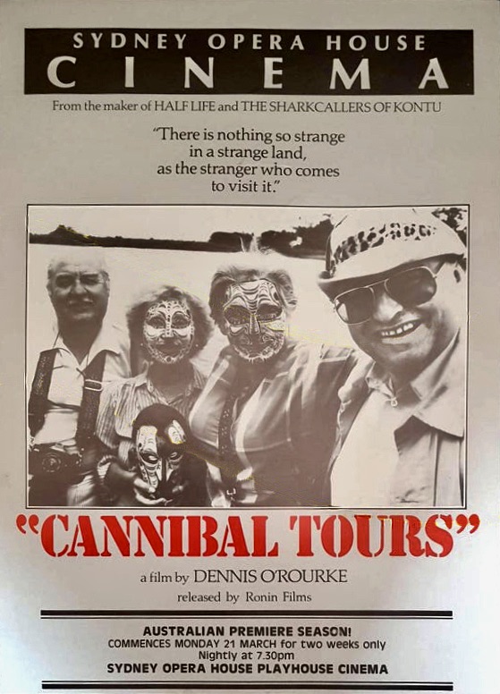 The Cambridge Dictionary definition of a tourist is “someone who visits a place for pleasure and interest, usually while on vacation.” That doesn’t have to have negative connotations but it usually does because most tourists in holiday mode are totally focused on their own enjoyment. As a result, they might not fully appreciate or understand the culture they are encountering and Cannibal Tours (1988), a documentary by Dennis O’Rourke, is an excellent example of this. The film follows a chartered river cruise of the Sepik River in Papua, New Guinea in which the travelers – mostly from Germany, Australia, Italy and the U.S. – disembark at several villages along the way and interact with the local residents while visiting nearby tourist attractions. The title may be facetious – there are no cannibals on display in the film – but cannibalism was practiced in the region up to 1960 when it was outlawed by the Australian government, which was in control of Papua, New Guinea at the time.