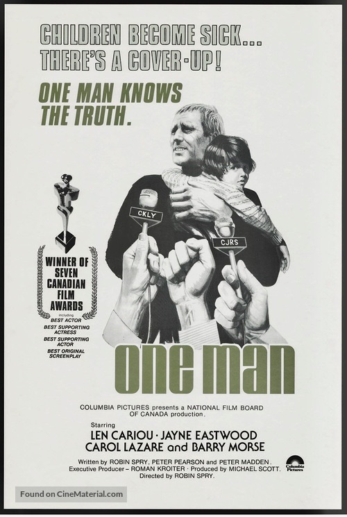 People can complain about the seventies all they want but it was a watershed decade in terms of launching new film genres like disaster movies (Airport, Earthquake, The Towering Inferno), Blaxploitation (Sweet Sweetback’s Baadasssss Song, Shaft, Superfly), conspiracy thrillers (Executive Action, The Parallax View, Three Days of the Condor), Eco-horror/sci-fi (Frogs, Night of the Lepus, Soylent Green) and slasher flicks (Black Christmas, Friday the 13th, Halloween). Arriving later in the decade was the environmental drama as represented by The China Syndrome (1979) and other films that addressed the dangers of nuclear power, man-made toxins and air pollution. Interestingly enough, one of the first movies to address the lethal health hazards of air pollution in the guise of an investigative thriller came from Canada entitled One Man (1977). It was produced by the National Film Board of Canada, directed and co-written by Robin Spry and featured Len Cariou in the leading role of a television reporter who is threatened by a powerful corporation over a controversial news story