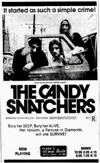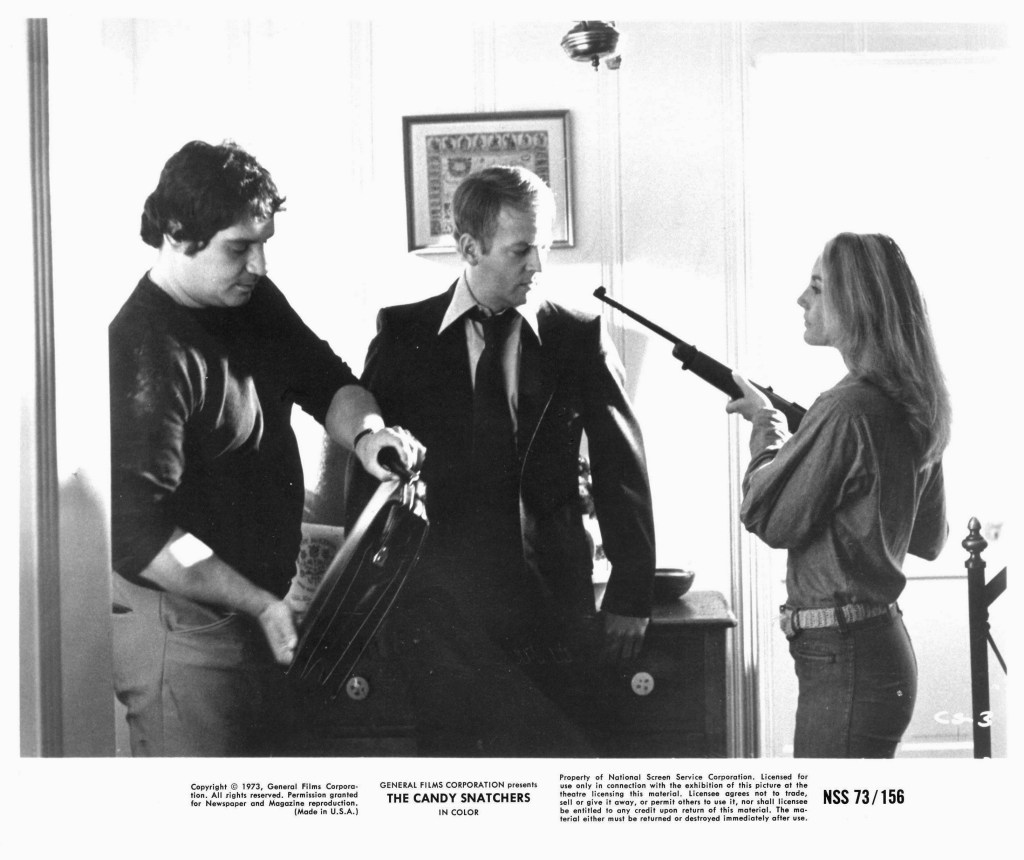 If you can overlook some of the truly terrible performances, rock-bottom production values, and the overstated folksy theme song (“Money is the Root of All Happiness”), you will discover a truly disturbing little movie that follows no formula but the rhythm of its own crazed drummer. Directed by Guerdon Trueblood, the film is truly a product of its era, fueled by a sense of outrage and anger that was indirectly a reaction to Viet Nam, Watergate and the Nixon administration. The Candy Snatchers flaunts its contempt of society through its main characters who will do literally anything for money but the film is more than a contemporary film noir about human greed.