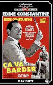 In 2016 the Cohen Media Group released My Journey Through French Cinema, written and directed by Bertrand Tavernier. It was not a traditional survey of French Cinema but a much more idiosyncratic and personal look at favorite films and directors from France in the eyes of Tavernier. In this way, it seemed inspired by Martin Scorsese’s 1999 documentary on Italian cinema, My Voyage to Italy, which shined a light on forgotten and underrated movies that deserved re-evaluation. Tavernier certainly covered some landmarks of French cinema in his overview but he also devoted time to specific directors like Jacques Becker and Jean-Pierre Melville while including favorite film composers and cinematographers as well. Some of Tavernier’s choice were fascinating obscurities and others were grade-B genre films that were so stylish and well-made that they served as superior examples of their craft such as Edmond T. Greville’s Le Diable Souffle aka Woman of Evil (1947) and Gilles Grangier’s Hi-Jack Highway aka Gas-Oil (1955). I was especially intrigued by film clips from the crime thriller Ca Va Barder (1955), which was directed by blacklisted American director John Berry (it was his first credited feature in France) and starred expatriate American actor Eddie Constantine as two-fisted itinerant adventurer Johnny Jordan. His rough and tumble character is as disruptive as a bull in a china shop.