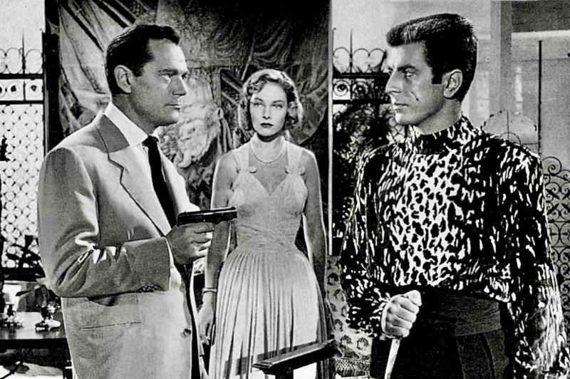 Johnny also discovers that Gina (May Britt), an ex-girlfriend, is in town and married to Diego (Jean Danet), the devious owner of a nightclub who has an expertise in knife-throwing. The Johnny-Gina relationship is antagonistic at first but it soon ripens into something more serious once Johnny realizes Gina is unaware of her husband’s criminal activities and needs rescuing.