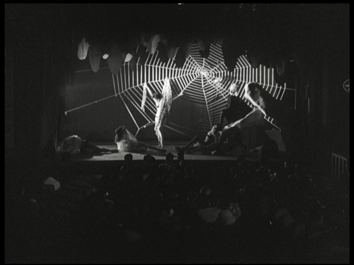 Another spectacular key moment occurs when Ayuko, the girlfriend of Ken (Yu Fujiki), a struggling newspaper reporter, is revealed to have a secret life as a stripper. During her stage show which features a giant spider web and a performer in a spider costume, Ayuko comes to a grisly end which is actually fitting since the stripper had earlier appeared excited by the possibility of being murdered. Even stranger is the fact that Ayuko was initially presented as the potential good girl heroine in the early stages of the movie.