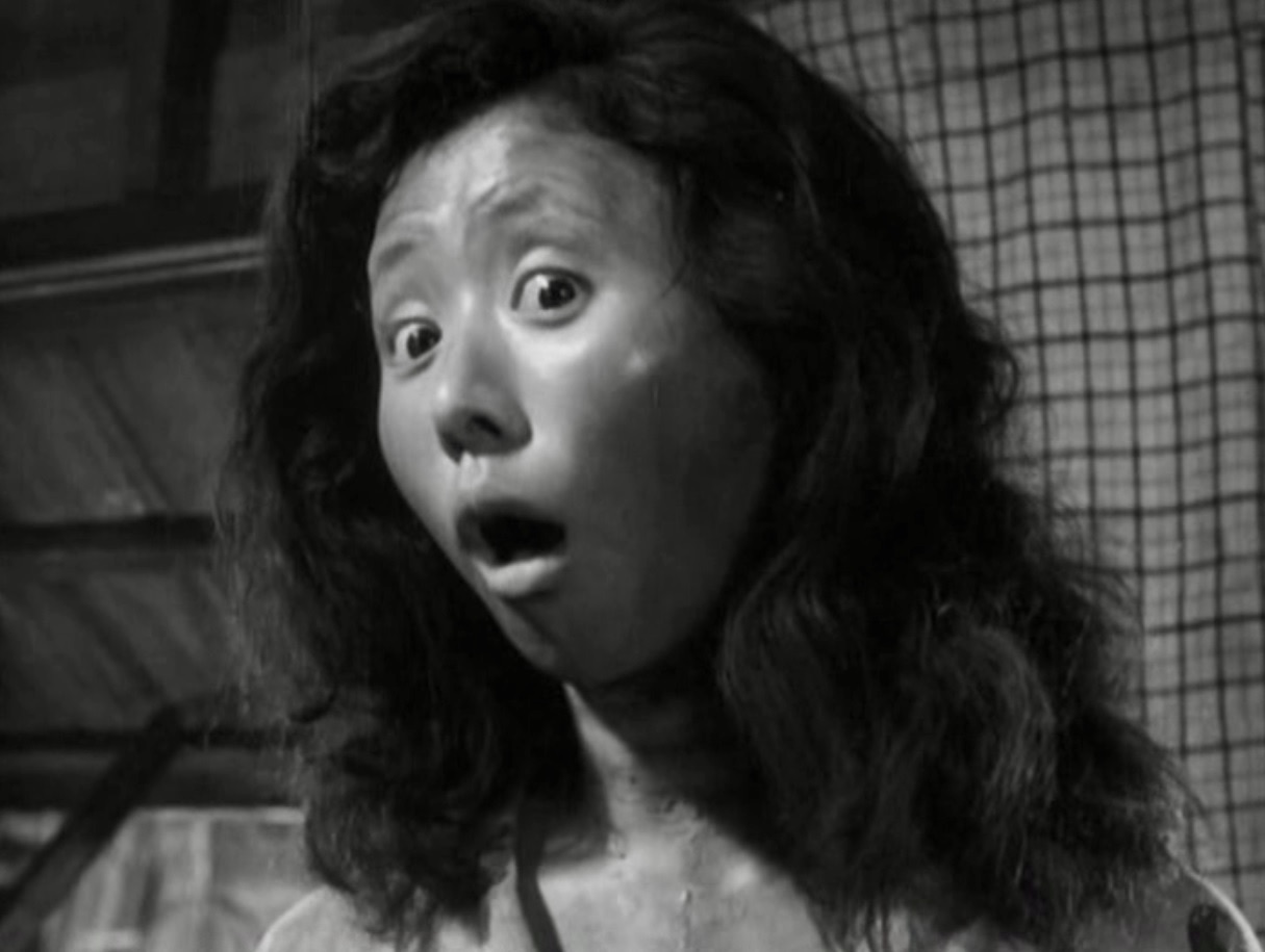 That arrangement turns out to be a total disaster for everyone involved. For one thing, Tsuru is not quite right in the head. We never learn whether her seemingly simpleminded behavior is the result of a brain injury from bombings during the war or whether it is from being beaten in a riot at the factory where she once worked. It could also be that she has suffered a complete mental breakdown after a lifetime of abuse and she shares her tale of woe with Toku, Pin and their shantytown neighbors in a flashback sequence which reveals some of the vile men who have crossed her path and mistreated her.