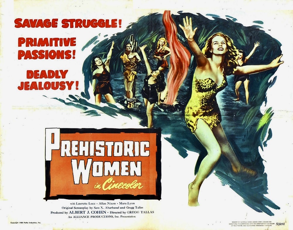 Not to be confused with the 1967 Hammer production starring Martine Beswick, Prehistoric Women (1950) is a camp classic to rival the similar The Wild Women of Wongo (1959) for moronic self-indulgence. Complete with a narrator and documentary-like footage, this cheapo period adventure has all the expected cliches of the genre (tribal dancing, scantily clad women, catfights, rock throwing and a flying dragon attack – the film’s worst special effect). One of the film’s stars, Joan Shawlee, who plays a cave woman named Lotee, had some amusing stories about the pre-production and filming in Hollywood Talks Turkey: “The “audition” for Prehistoric Women was like a Marine obstacle course. First you had to grab a rope and swing through the outer office into the producer’s office – and that broke me up to begin with. So I swung on the rope and fell into his office and picked myself up. “Terrific,” he said. “Now we have these hurdles over here.” So I did that and passed the tests. “Where’s the script?” I asked….He said, “This is prehistoric times. They didn’t even have the alphabet yet.” So he had me improvise a scene eating meat before a campfire and saying “Unga-chunga-lunga.” Later on I got the script. Guess what the dialogue was like? “Unga-chunga-lunga.”