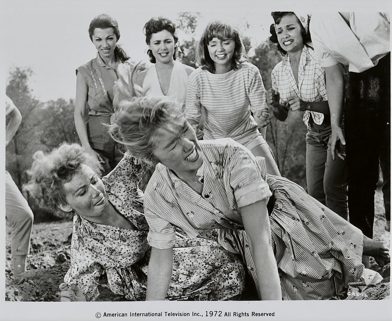 Anyone with a soft spot for the Roger Corman B-movies of the late fifties are more than familiar with this prolific actress who was one of the director’s finest “scream queens.” She spent more time working in television than film over the course of her busy career but she has achieved cult notoriety for such Corman faves as It Conquered the World (1956) and Not of This Earth (1957) as well as other offbeat offerings like The Alligator People (1959) and Pretty Poison (1968). Swamp Women and Stark Fear, however, are not among her favorite memories. Swamp Women was an overly melodramatic crime drama in which a group of female criminals break out of jail and take a male hostage (Touch Conners aka Mike Conners) on their way to retrieve some stolen diamonds hidden in the bayou. In Interviews with B Science Fiction and Horror Movie Makers: Writers, Producers, Directors, Actors, Moguls and Makeup by Tom Weaver, Garland recalled, Roger Corman’s Swamp Women: “Oooh, that was terrible thing! Roger put us up in this old abandoned hotel while we were on location in Louisiana – I mean, it was really abandoned! Roger certainly had a way of doing things back in those days – I’m surprised the hotel had running water! I went to bed, and I heard this tremendous crash! I went screaming into Marie Windsor’s room, and there she was with the bed on top of her – the whole bed had collapsed! Well, we started laughing because everything was so awful in this hotel, just incredibly terrible, and we became good friends.” Garland also added, “At the end of Swamp Women, I was killed with a spear and fell out of a tree…they had three guys underneath. And when they “killed” me, I just fell – dead weight on these three poor guys. Roger said to me, “You’re really one of the best stuntwomen I have ever worked with.”