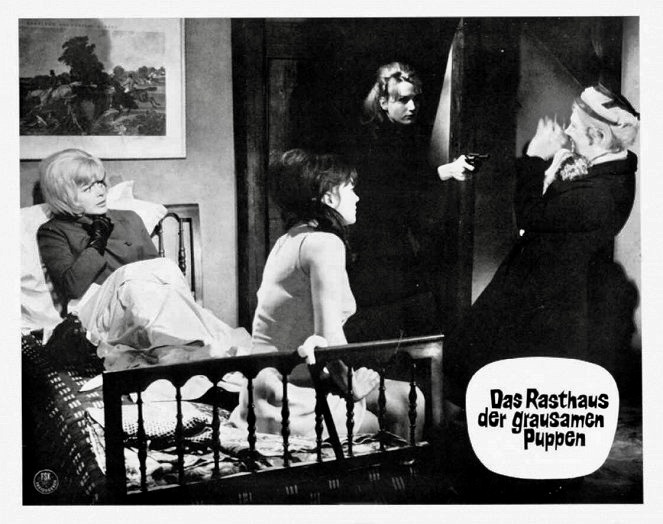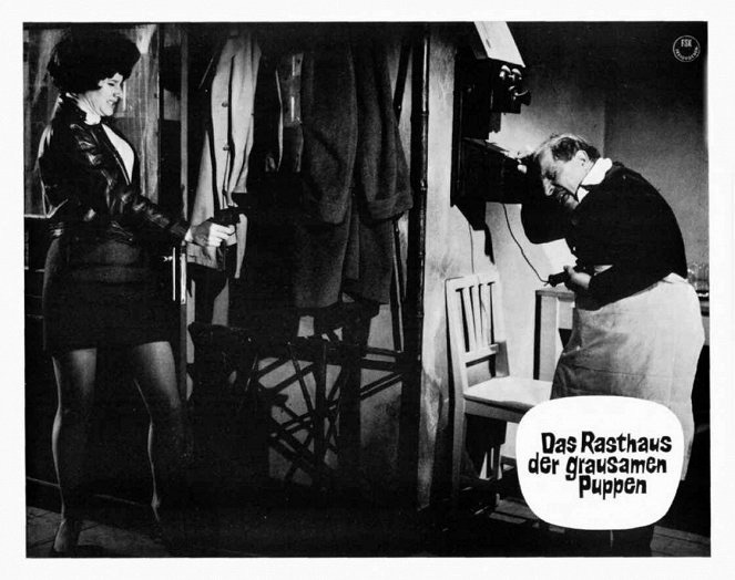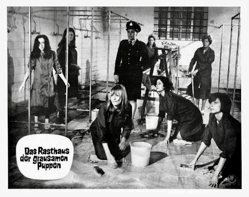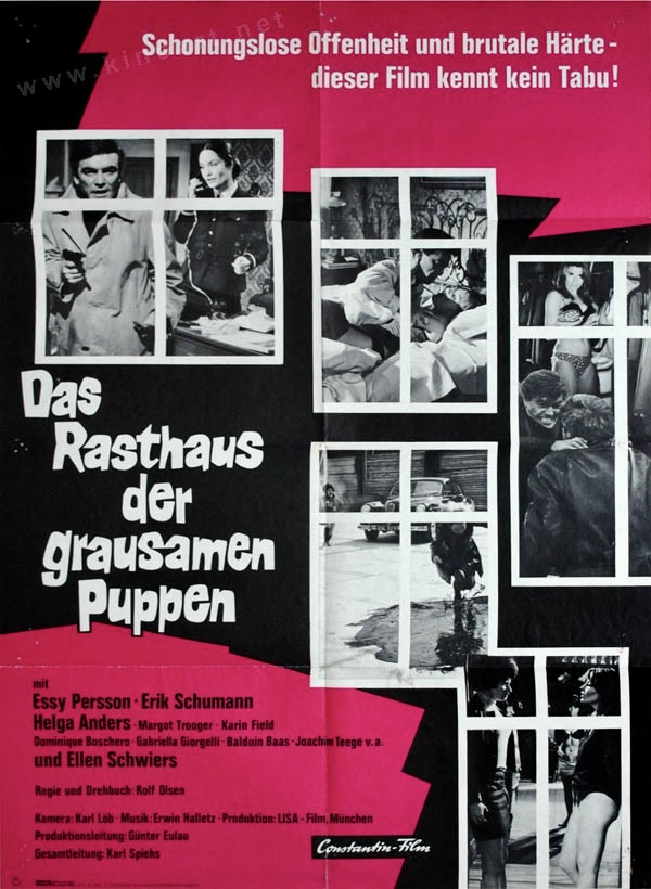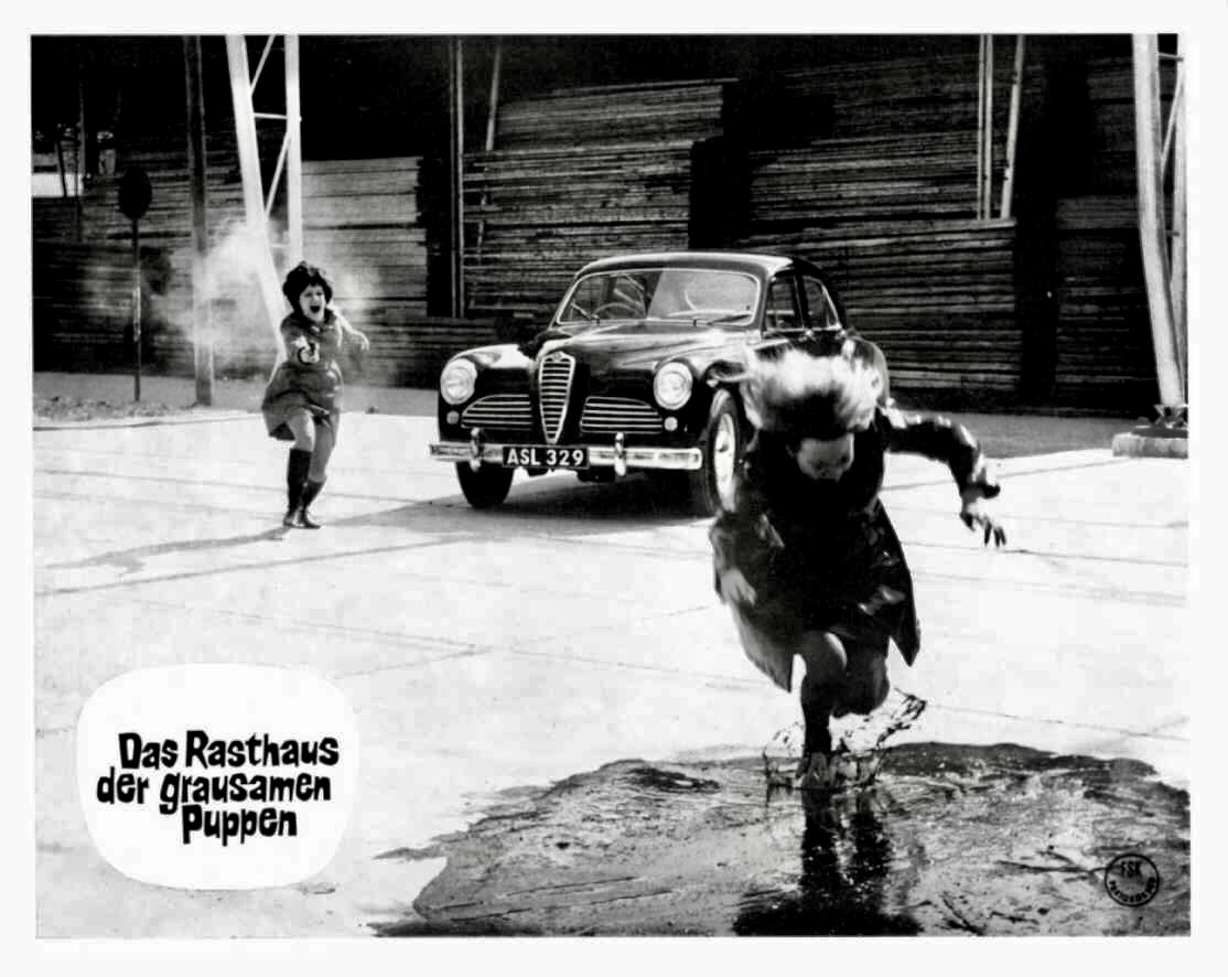 Have you ever noticed that some international film titles just don’t translate easily into English? Take, for example, the German B-movie crime thriller Das Rasthaus der grausamen Puppen (1967), directed by Austrian triple threat Rolf Olsen, a prolific actor, screenwriter and director. The film was released in some markets as The Devil’s Girls but it was also known as Inn of the Gruesome Dolls, The Roadhouse of the Violent Girls, and, my favorite, Rest Home of the Cruel Puppet. The latter WTF title gives no clear indication of what the hell it’s about so let me lay it out for you. Think of it as a German variation on Russ Meyer’s Faster, Pussycat! Kill! Kill! (1965) crossed with a women-in-prison flick like House of Women (1962). Add in some exploitation elements like catfights, an attempted lesbian seduction, and gratuitous violence and top it all off with some lame comic relief not unlike the inclusion of moronic characters similar to comedian Eddi Arent in the Edgar Wallace krimi thrillers of the 1960s (Arent usually played meddlesome servants, bumbling detectives or eccentric upper-class twits in those films). It all adds up to wildly uneven but consistently entertaining grindhouse trash where scenes can sometimes be mean-spirited and goofy at the same time.
