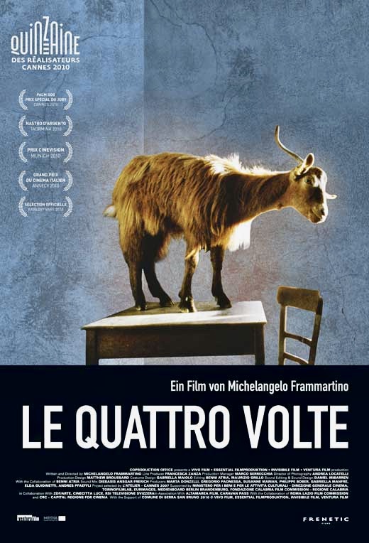 Smoke fills the screen and drifts toward the sky. We see black earth that is steaming and could be cooling lava. Then we notice small holes punched into the dark topography where smoke is being released. A wide shot reveals that we are looking at a mound of charred material that is being raked by a worker at the top of the heap. Where are we and what are we looking at? Michelangelo Frammartino’s Le Quattro Volte (2010), which roughly translates as The Four Times, is an immersive but often disorienting portrait of life in the village of Caulonia, Italy, which often requires the viewer to make sense of a visual detail or local ritual without a frame of reference. This is not detrimental, however, to the film’s exploratory narrative but one which is enriched by a sense of mystery and wonder.