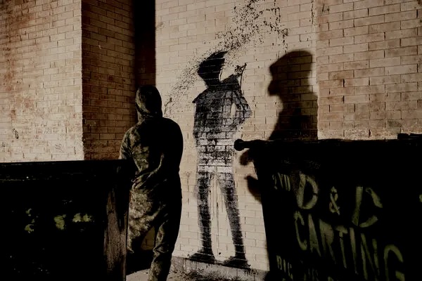When did grafitti drawings and spray paint signage graduate from being considered vandalism to a recognized art movement? Pop culture historians pinpoint the late 1960s as the time that subway art and other movements began appearing in major cities with Philadelphia and then New York City paving the way. Some believe that grafitti taggers Cornbread aka Darryl McCray and Top Cat 126 from Philadelphia were among the first to elevate spray paint signage out of its defacement stigma. And by the late seventies/early eighties grafitti art had become much more elaborate and pervasive, thanks to the pioneering efforts of cult figures like Jean-Michel Basquiat and Keith Haring, who eventually made their brand of street art wildly popular and collectible. What most people don’t know is that a Canadian artist named Richard Hambleton created a public art series between 1976 to 1978 in major cities across America and Canada that were inspired by real life crime scenes. These homicide victim street portraits actually prefigured the spray paint artists movement in New York City and Shadowman (2017), a documentary by Oren Jacoby, delves into the elusive figure of Hambleton, who was famous before contemporaries Basquiat and Harring, but is the least known of the three today.