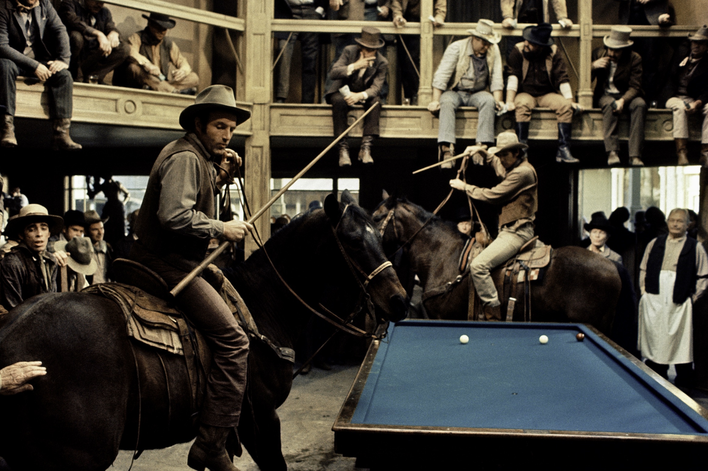 Although Lelouch’s concept is epic in scope, his execution is intimate, focusing more on relationships and the day to day details of life on the frontier, while occasionally referencing then-historic events (newspaper headlines announcing the death of Billy the Kid, etc.) that place the time period and setting in a broader context. Certainly violent events occur but they are downplayed or minimized, especially David’s encounter with the three men who raped and murdered his first wife toward the end of the film.