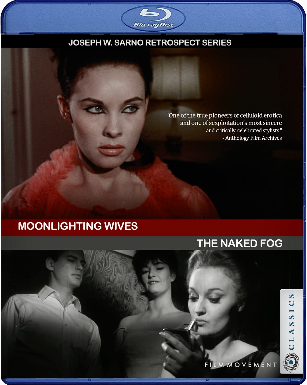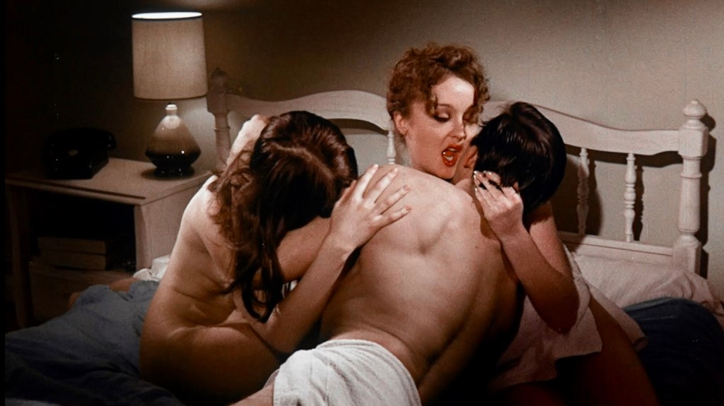 The most complete version of Moonlighting Wives was made available by the Film Movement on Blu-ray in April 2023. Despite some scratches on the print here and there, the presentation looks great with vastly improved audio and color correction since its VHS days. Sarno’s The Naked Fog is also included as a co-feature and the extras include interviews with Sarno and cinematographer Jerry Kalogeratos on Moonlighting Wives, and, best of all, an exhaustive, in-depth audio commentary on the movie by film historian Tim Lucas as well (he is currently working on a book about Joe Sarno).